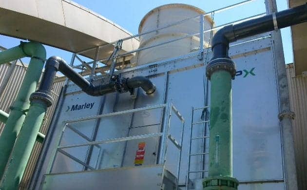 Further to the cooling tower installation, the Marley Flow Control team removed the old ducting and replaced it with a more elegant layout to avoid overhead structures and provide a more effective airflow delivery.